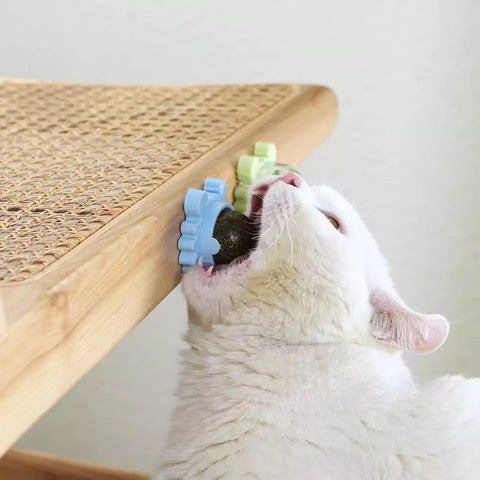 Cat-nip. Silvervine. and Gall Nut are 100% natural. organic and safe. The uniquely designed cat-nip toy is adhered to the wall and uses strong double-sided adhesive to easily attach to any surface.360° Rotatable