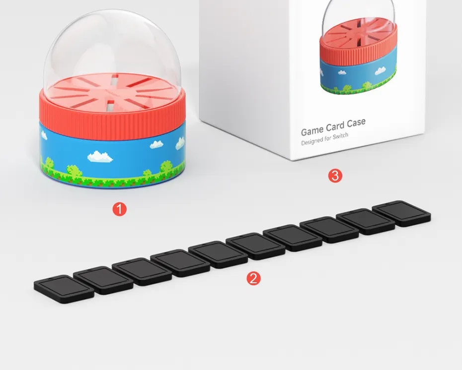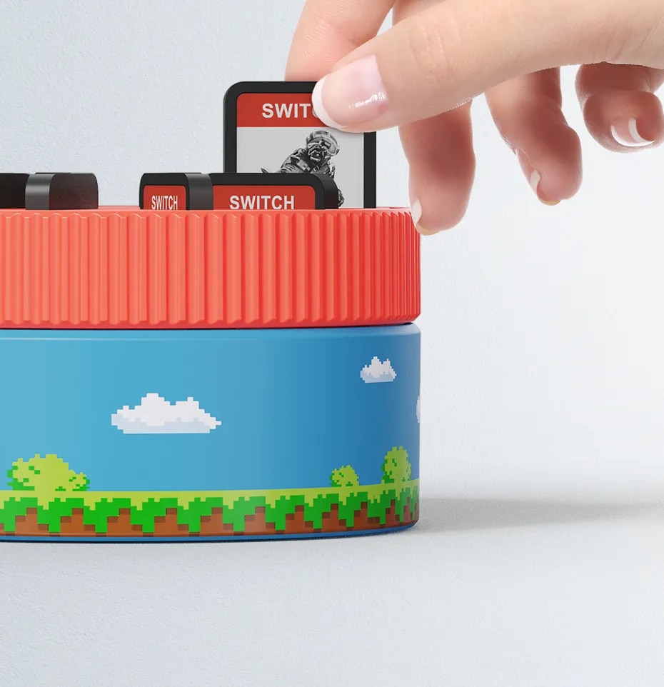 Switch games are tiny and prone to loss. This attractive little dome keeps them safe and sound. It comes with blanks, so it always looks full. The magnetic lift system is really neat, as it pops up the games in the same spot as you turn the carousel. It's a great addition to any gamer's kit.