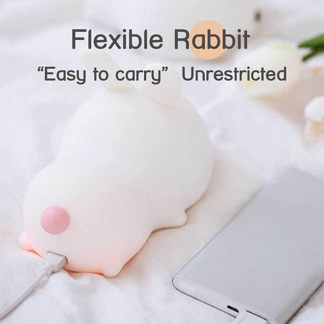 Two Versions Available: 1. Tap Control Only : This version DOES NOT COME WITH A REMOTE, only supports tap control. Press the bottom power button to turn it on/off. Tap the squishy bunny kids night light surface to switch among normal white light mode, 7 color changing light mode and standby mode. 2. Easy Remote Control: With the included remote, you can easily adjust the level of brightness or turn off this LED lamp, Kids may love to play with the remote and try the all kinds of color changing lights.