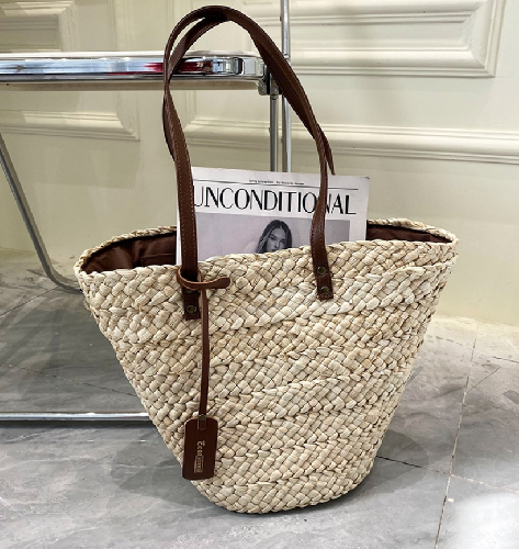 the Basket Tote Bag, a stylish and versatile accessory that's perfect for your everyday needs. This spacious tote bag features a roomy interior, making it ideal for carrying your essentials, whether it's for a day at the beach, a trip to the market, or a casual outing with friends. The timeless design of the Basket Tote Bag adds a touch of effortless elegance to any outfit, making it a must-have addition to your wardrobe.